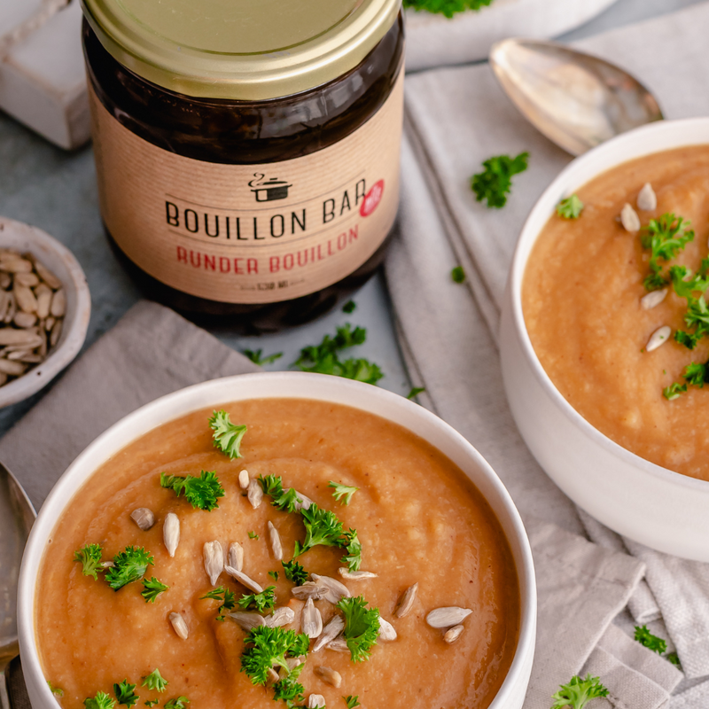 Bouillon Bar kiest er bewust voor om de bouillon niet te passeren, daardoor gaan er geen smaak en voedingsstoffen verloren. Dit uit zich in een geconcentreerde bouillon die verantwoord en bovenal heel lekker is.
