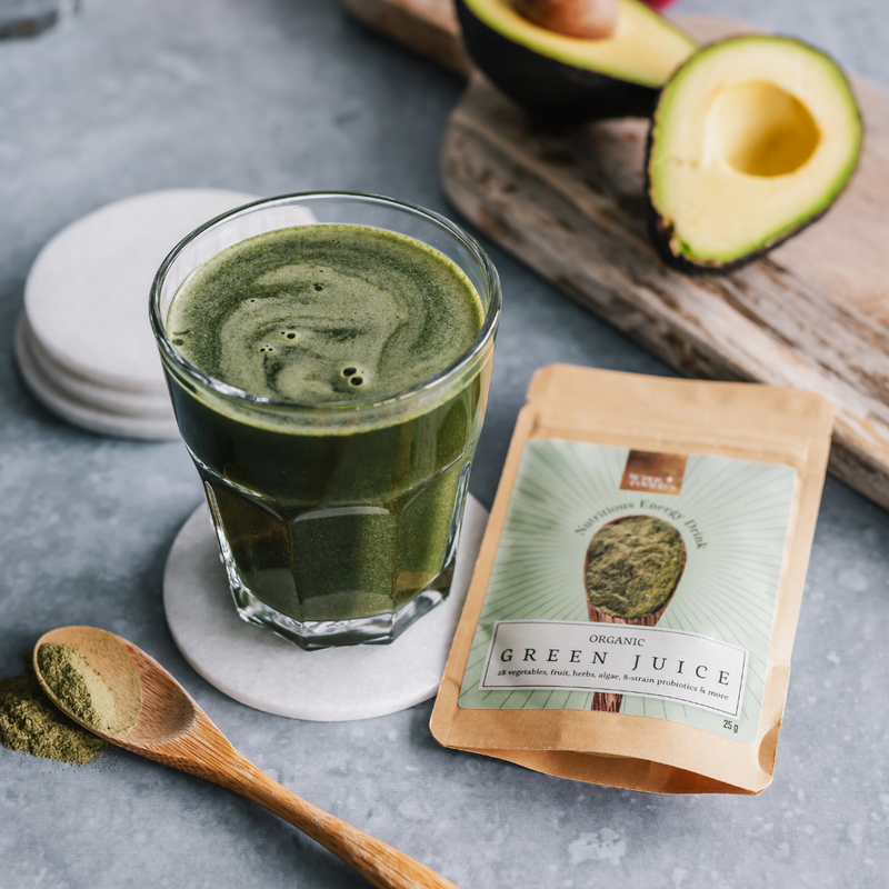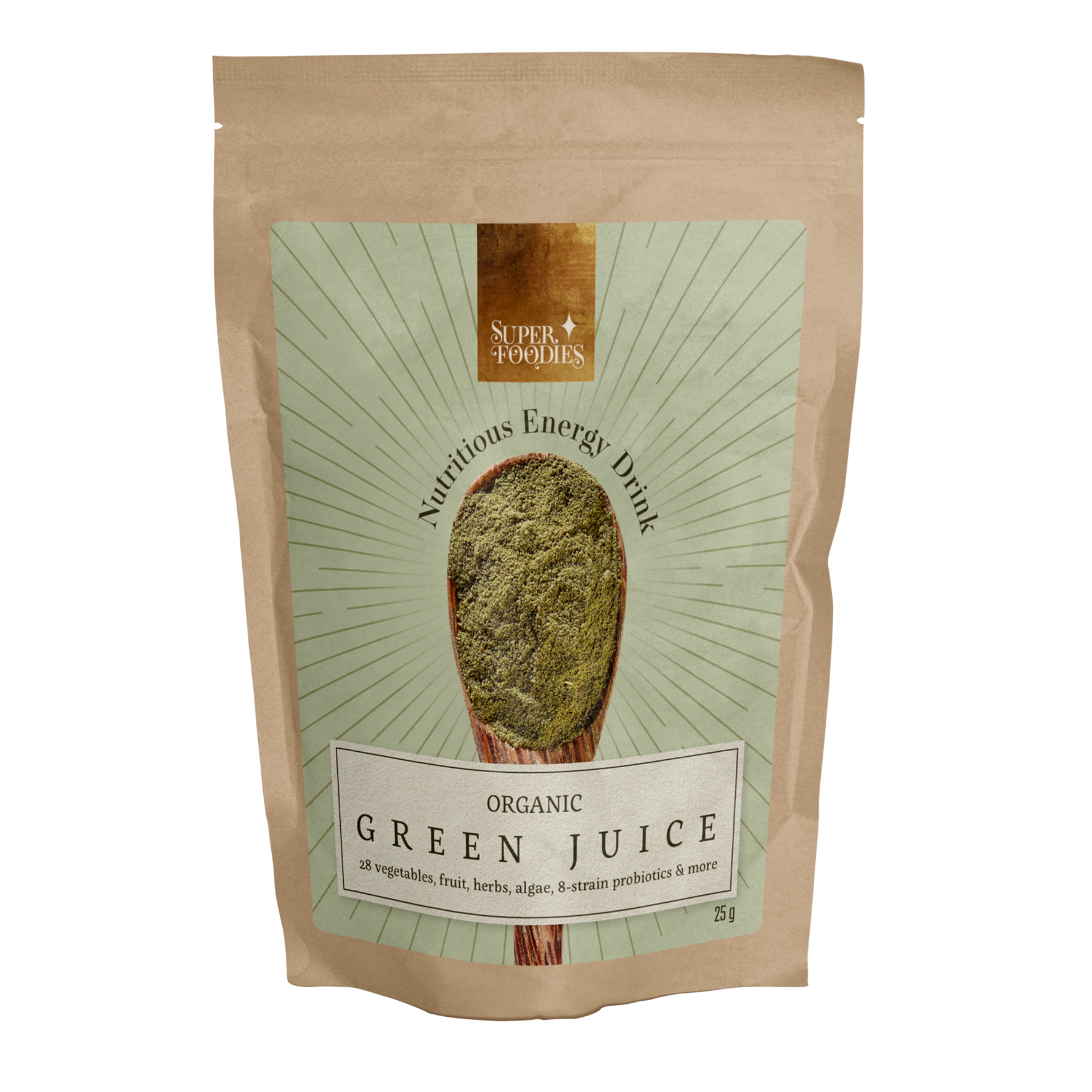Dankzij deze unieke mix van biologische, gedroogde groenten, kruiden algen en fruit, activeert Green Juice de natuurlijke energie in je lichaam en bevordert de energiestofwisseling. Ook helpt Green Juice bij vermoeidheid en moeheid en heeft deze superdrank een positieve invloed op het immuunsysteem.