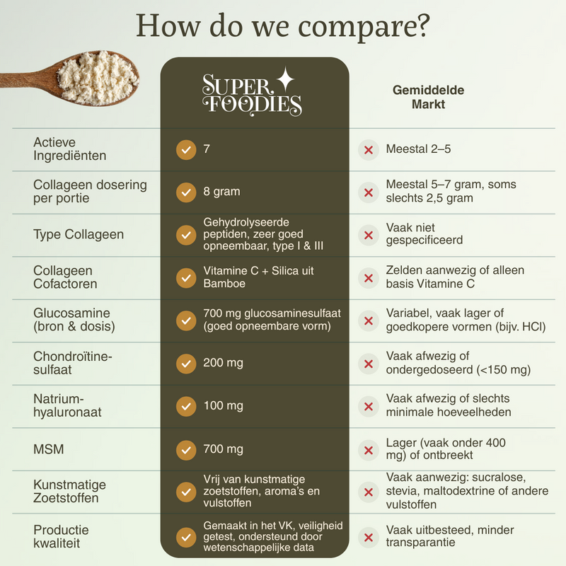 Sporters en actieve personen: Ideaal voor mensen die herstel van gewrichten, veerkracht en ondersteuning van mobiliteit zoeken. Waarom deze formule? Multi-Collageenmix: Bevat collageentypes I en III afkomstig van rund. Voor wie is het? Sporters en actieve personen: Ideaal voor mensen die herstel van gewrichten, veerkracht en ondersteuning van mobiliteit zoeken.